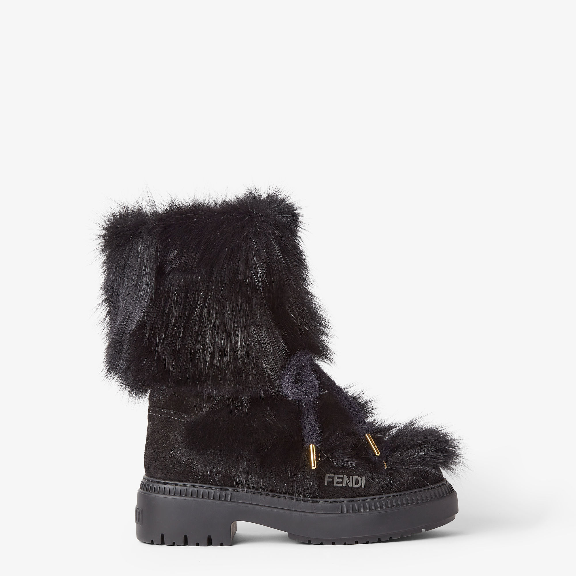 • Ботинки из чёрного лисьего меха с замшевыми вставками в тон