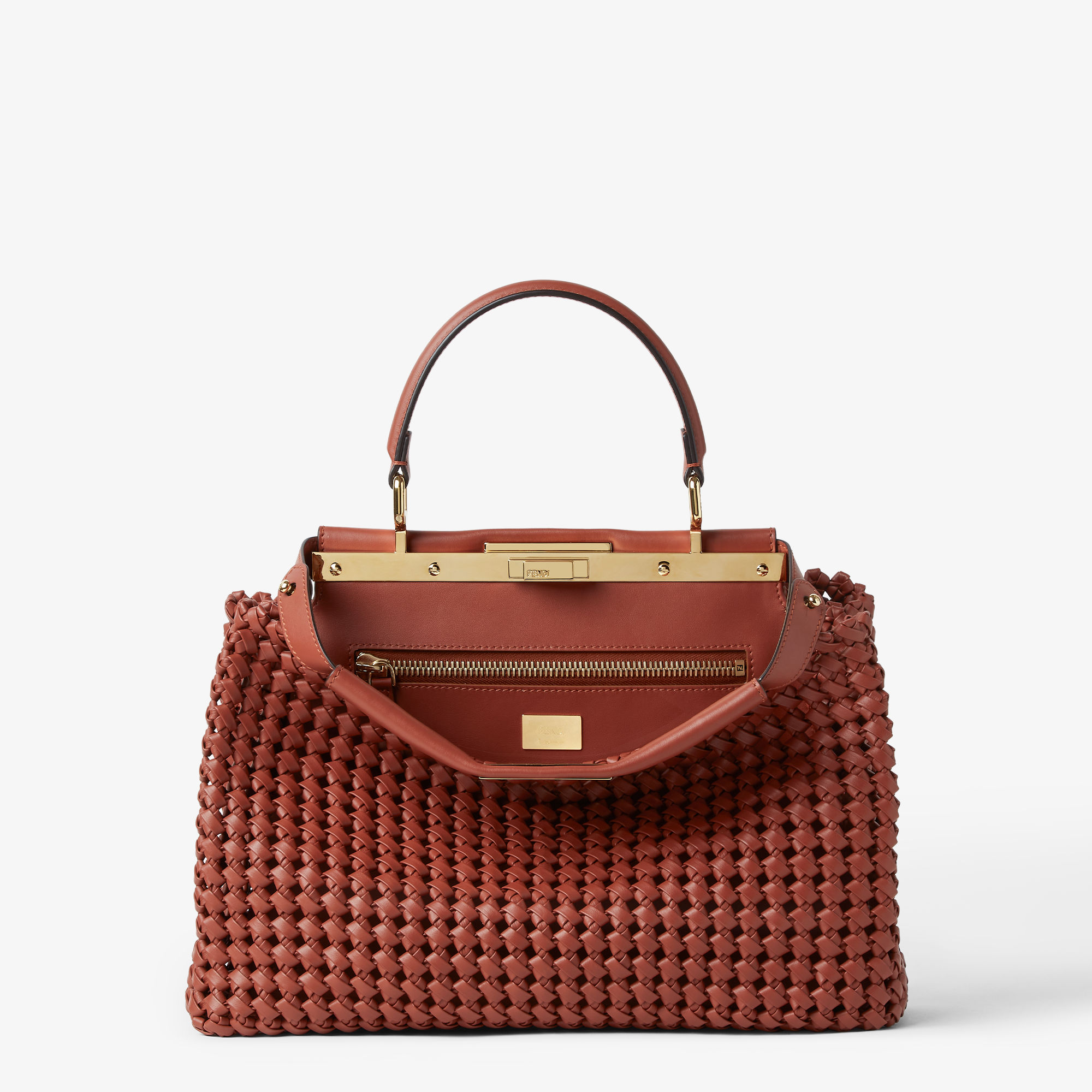Сумка Peekaboo Medium из плетёной кожи цвета сиена.