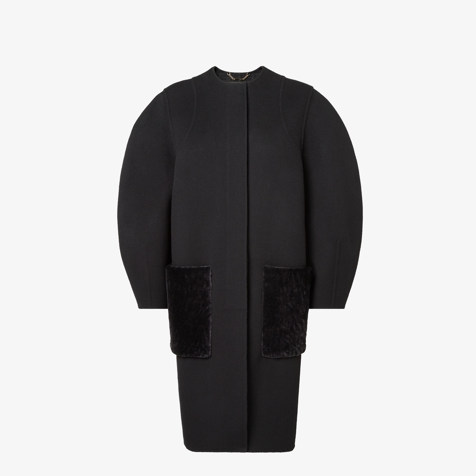 • Силуэт кокон с широкими длинными рукавами и круглым вырезом горловины